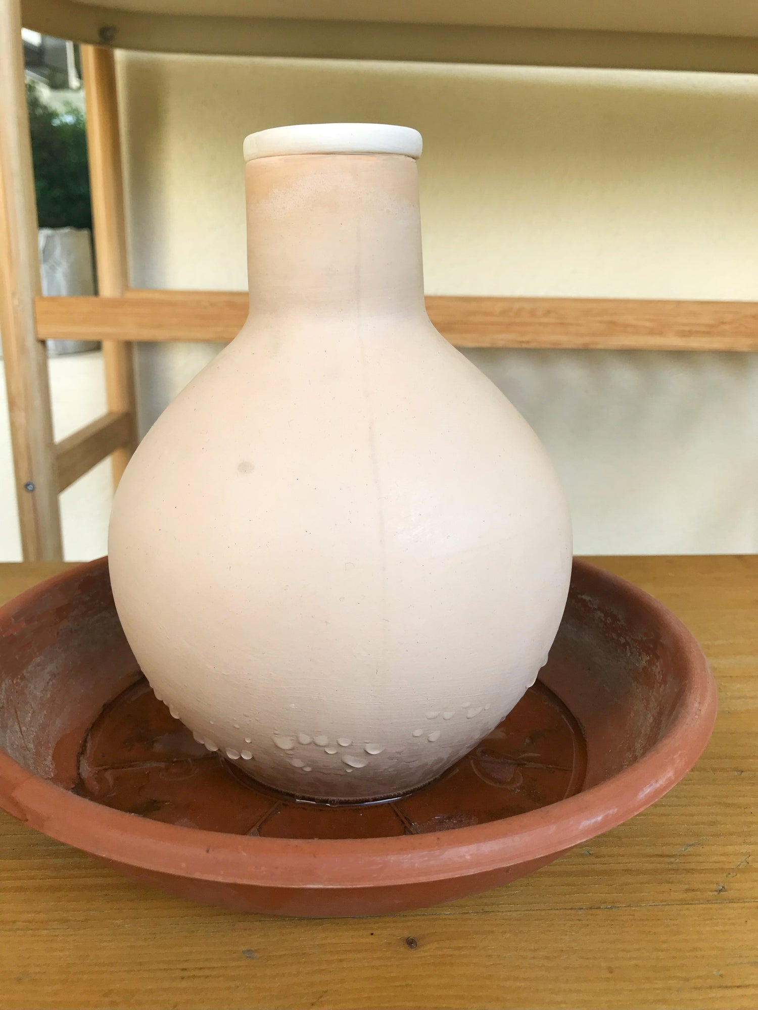 When placed in the ground near the plants and filled with water, the oya's micropores will diffuse the water directly to the roots, which pull moisture only when needed – no more no less.